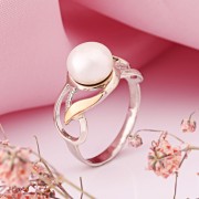 Silberring mit Gold in Deutschland kaufen Perlen. Eleganter Ring aus 925er Silber, verziert mit Gold und Zuchtperlen! Rhodiniert! Der Ring wird die Zärtlichkeit, den Charme und die Natürlichkeit Ihrer Schönheit perfekt betonen und die Aufmerksamkeit auf die Weiblichkeit Ihrer Hände lenken.
