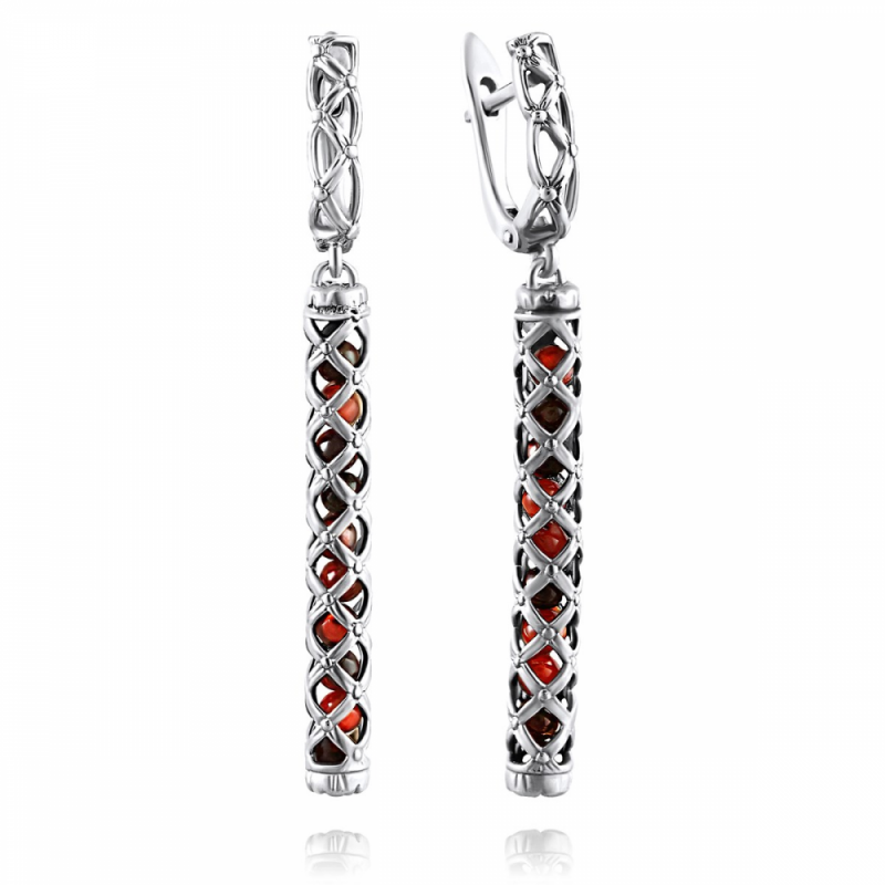 Silberohrhänger 925º mit Bernstein in Deutschland kaufen. Wunderschöne Ohrhänger als filigrane Zylinder aus rhodiniertem Silber 925 Probe, gefüllt mit Bernstein in Cognactönen! Eine einzigartige Gelegenheit, Ihre Individualität zu betonen, das Bild von Weiblichkeit, Sonnenschein und Zärtlichkeit zu vermitteln.