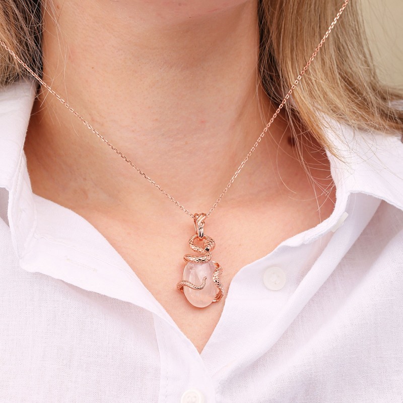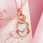 Zarter, bezaubernder Anhänger aus rotvergoldetem 925er Sterlingsilber mit großem Mondstein. Inklusive Geschenk-Ankerkette mit Diamantschliff.