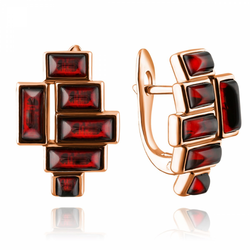 Vergoldete Silberohrringe 925º mit Bernstein in Deutschland kaufen. Wunderschöne Ohrringe aus rotvergoldetem Silber 925 Probe, gefüllt mit Bernstein in roten Cognactönen! Eine einzigartige Gelegenheit, Ihre Individualität zu betonen, das Bild von Weiblichkeit, Sonnenschein und Zärtlichkeit zu vermitteln.