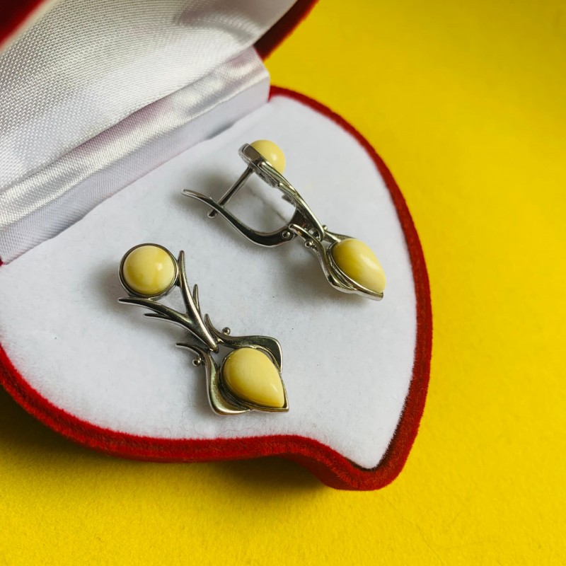 Silberohrhänger 925º mit Bernstein in Deutschland kaufen. Wunderschöne Ohrhänger aus rhodiniertem Silber 925 Probe, gefüllt mit königlichem Bernstein! Eine einzigartige Gelegenheit, Ihre Individualität zu betonen, das Bild von Weiblichkeit, Sonnenschein und Zärtlichkeit zu vermitteln.