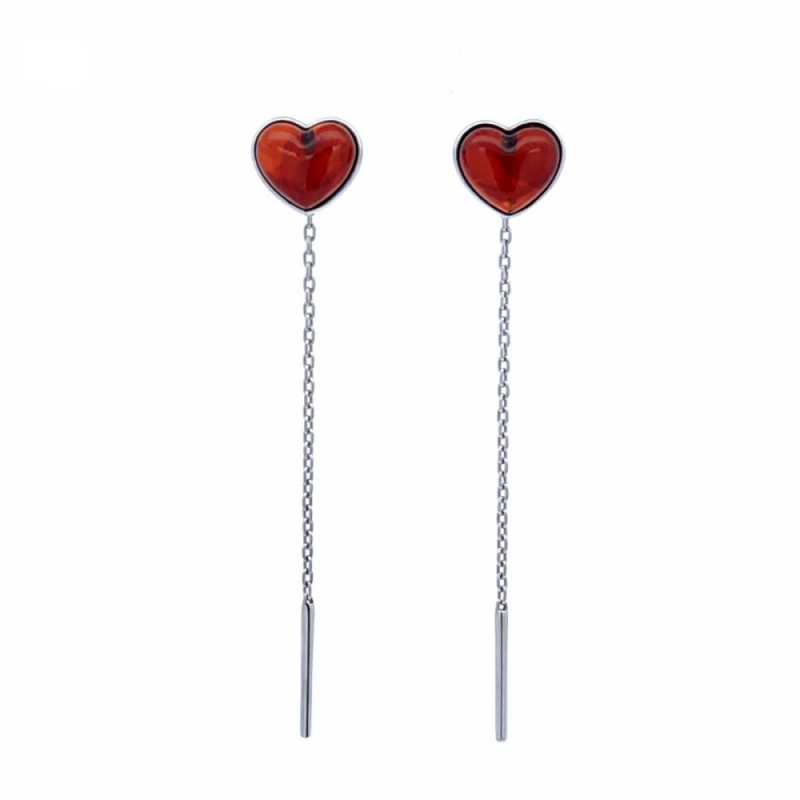 Silberohrringe in Deutschland kaufen Durchzieher mit Bernstein. Wunderschöne Ohrringe zum Durchziehen aus rhodiniertem 925er Silber mit Bernstein, mit diesem erstaunlichen "Stück der Sonne", in allen Schattierungen der Cognacfarbe, begeistert und erfreut Sie dank seiner Schönheit!Eine einzigartige Gelegenheit, Ihre Individualität zu betonen, das Bild von Weiblichkeit, Sonnenschein und Zärtlichkeit zu vermitteln. In solchen Produkten wird jeder Vertreter des schönen Geschlechts vor anderen als echte Königin auftreten, als stilvolle Fashionista, die von sich selbst und ihren Fähigkeiten überzeugt ist.