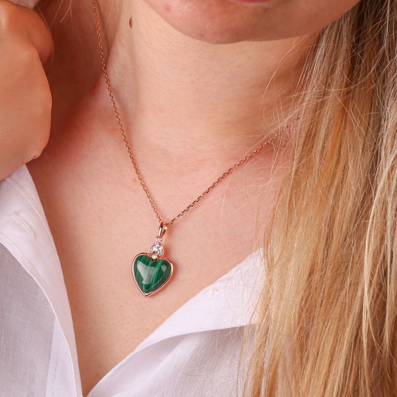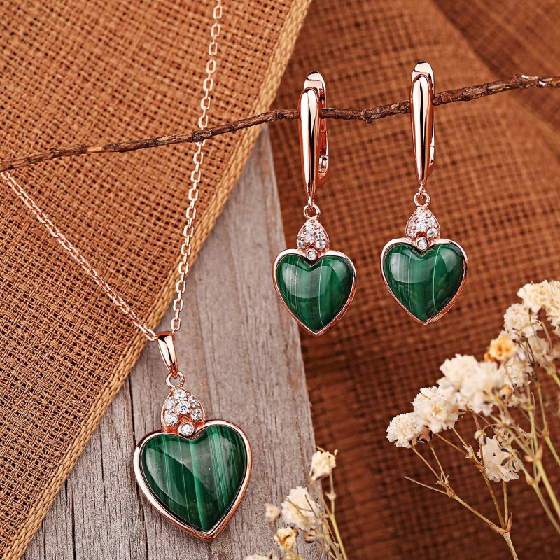 Malachitschmuck gilt als einer der schönsten und entzückendsten. Dieser Stein ist berühmt für seine einzigartige grüne Farbe und erregt die Aufmerksamkeit mit seiner ungewöhnlich schönen Textur. Eine großartige Gelegenheit, sich selbst zu verwöhnen oder Ihrer Liebsten ein Geschenk zu machen, das die Zärtlichkeit, den Charme und ihre natürliche Schönheit unterstreicht!