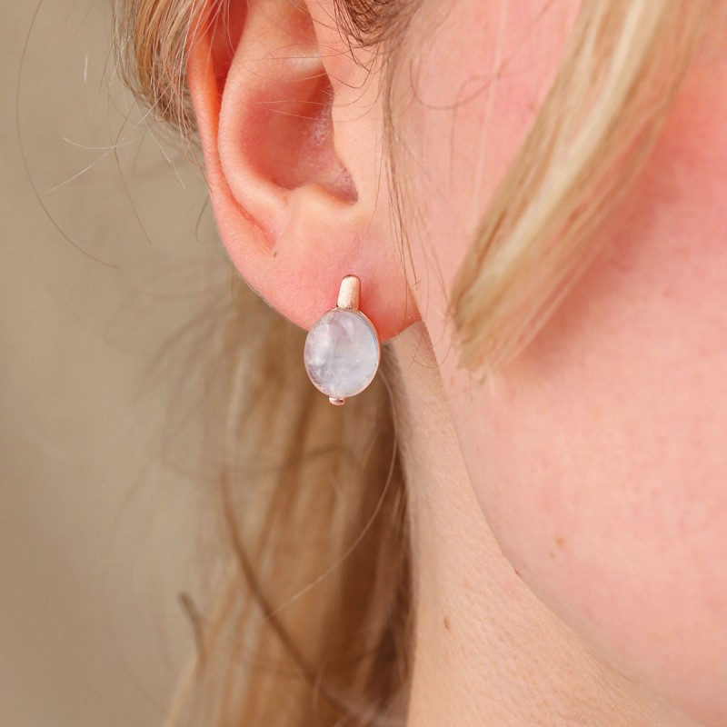 Vergoldete Ohrringe. Zauberhafte Ohrringe aus rotvergoldetem 925er Sterlingsilber mit dem faszinierenden Schimmer eines Mondsteins! Diese eleganten Ohrringe unterstreichen Ihre Einzigartigkeit und verleihen Ihrem Look Weiblichkeit, Leichtigkeit und sonnige Eleganz.
