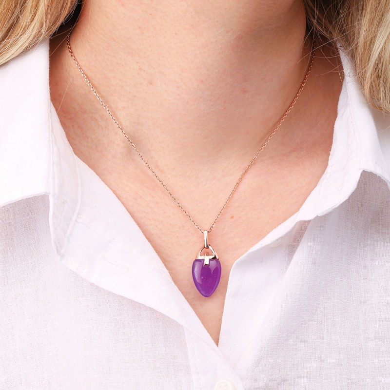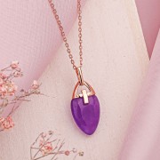 Vergoldetes Silber Anhänger. Zarte Anhänger mit violettem Nephrit – ein Hauch von Eleganz und Harmonie. Dieser exquisite Anhänger aus vergoldetem 925er Silber mit einem faszinierenden violetten Nephrit verleiht Ihrem Look eine Note von Raffinesse und Anmut. Die Ankerkette mit Diamantschliff wird als Geschenk beigelegt und sorgt für zusätzlichen Glanz.