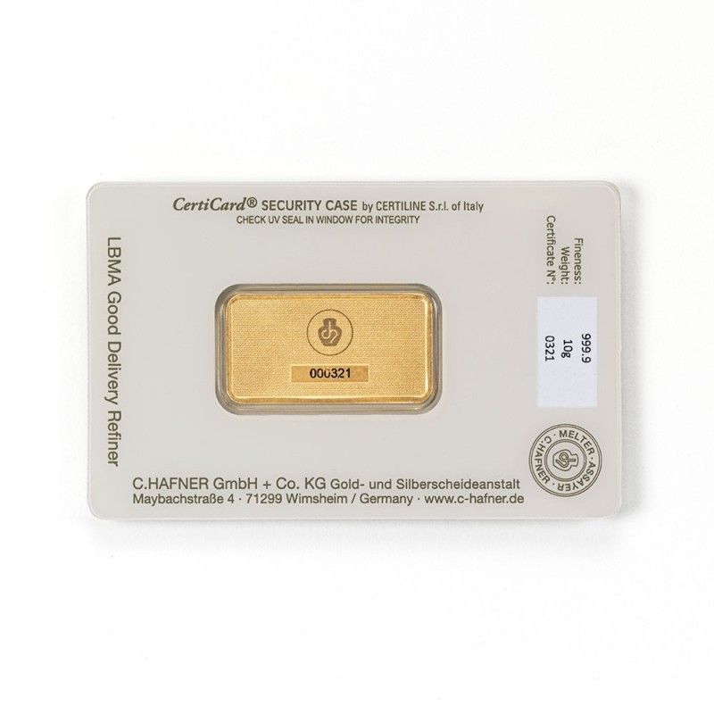 Größe der Barren, ca.: 34,00 mm x 19,0 mm x 0,3 mm, Gewicht 10,0 Gramm.
