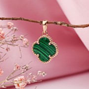 Rotgold mit natürlichem Malachit – ein Schmuckstück, das die Herzen berührt und den einzigartigen Stil seiner Trägerin hervorhebt.