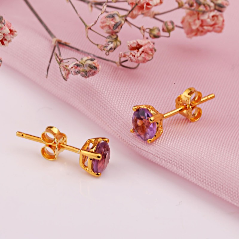 Der Amethyst, Stein der Harmonie und Inspiration, verzaubert mit der Tiefe seines Farbtons und offenbart Sanftmut, Selbstvertrauen und die natürliche Schönheit der Seele. Der warme Glanz der Vergoldung unterstreicht das Leuchten des Steins und schafft ein edles Gleichgewicht aus Licht, Zartheit und Raffinesse.