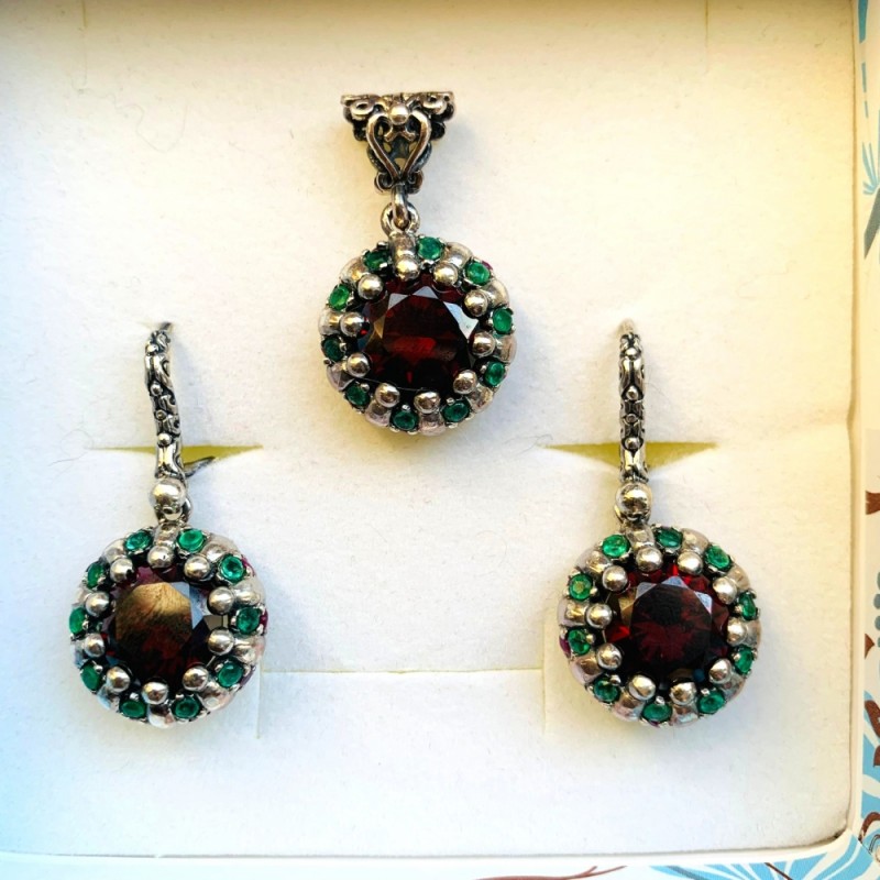 Silberset "Goelistan". Granat & Smaragd