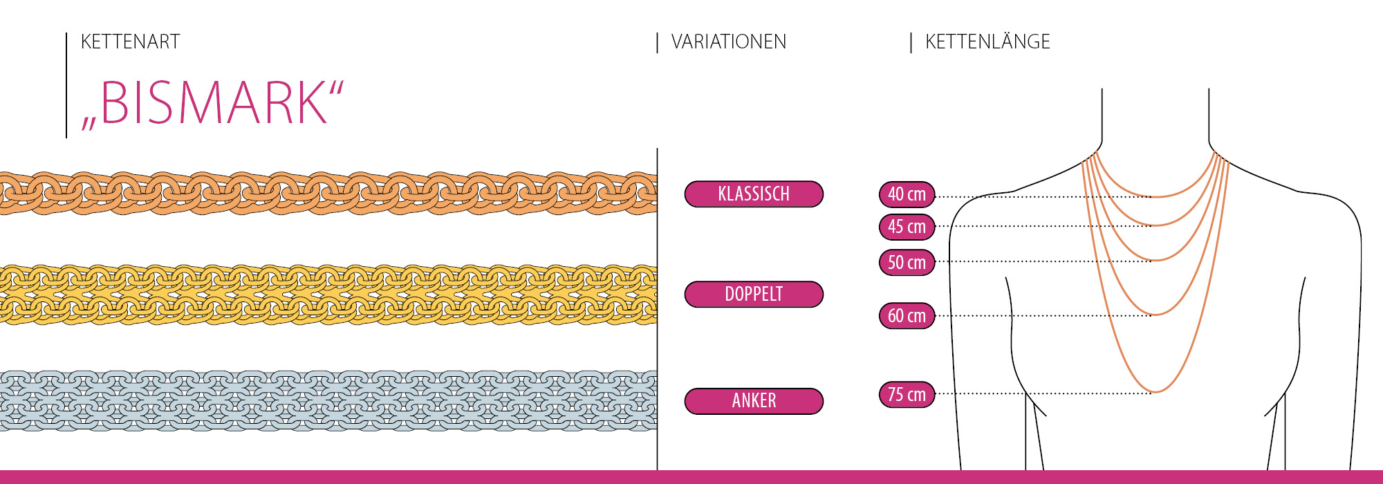 Silberketten Garibaldi ist in der Tat eine Reihe von Schmucklösungen, bei denen es sogar schwer zu sagen ist, dass all dies die gleiche Klasse von Kettenweben ist. Um nicht in die technischen Details einzutauchen, sagen wir, dass bei dieser Art des Webens die Glieder an mehreren Stellen verbunden sind und nicht an einem - wie beim Ankern oder Muschelweben. In diesem Fall sind die Glieder Elemente einer Spirale. Die Silberketten Garibaldi waren nicht mehr ausschließlich ein männliches Accessoire, und es gab eine große Anzahl von Webarten für Frauen - zum Beispiel den „Moskauer Bismarck“, in dem die Lücken zwischen den Gliedern dem Produkt Eleganz verleihen, oder den „glamourösen Bismarck“. Sie können die leichteste Kette dieses Webens mit einem Gewicht von fünf Gramm kaufen und Ihren Hals mit einem starken und zuverlässigen goldenen Spinnennetz schmücken, oder Sie können ein schweres und solides goldenes Armband wählen.Wie beim „Muschel“ -Weben liegen die „Bismarck“ -Ketten für das Tragen am Nacken normalerweise eng am Hals, und die übliche Länge eines Schmuckstücks beträgt 35-40 Zentimeter für Frauen oder 50-55 für Männer.