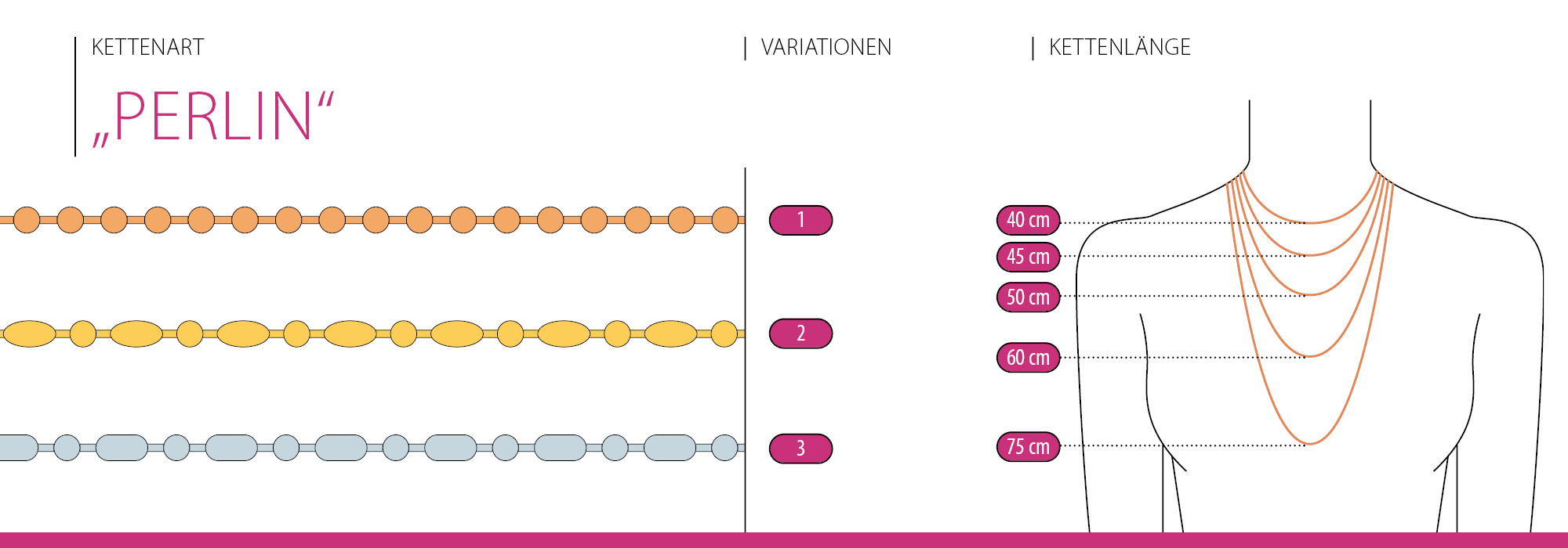 Perlina-Webketten werden normalerweise nicht zum Tragen von Anhängern und Anhängern verwendet – sie sind unpraktisch und die Glieder können in der Schleife des Schmucks stecken bleiben. Aber solche Ketten sind nicht als „Träger“ gedacht. Perlenketten sind eine eigenständige Dekoration, die keiner Zusätze bedarf. Halsketten sind selten kurz, meist reicht ihre Länge bis zum Halsausschnitt.