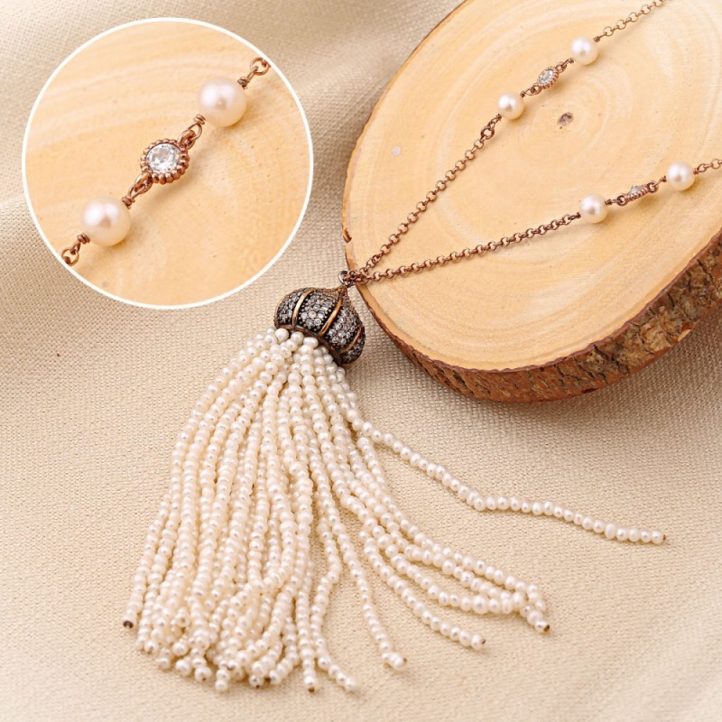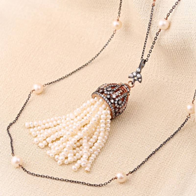 Solche Dekorationen sind universell - sie sehen sowohl mit einem lässigen Look als auch mit einem Abendkleid gut aus. Wenn Sie eine Halskette aus Silber mit Perlen wählen, haben Sie die Möglichkeit, mit Stilen zu spielen. Moderne Designer bieten viele Variationen: von minimalistischen Garnen mit einer Perle bis hin zu komplexeren Kompositionen.