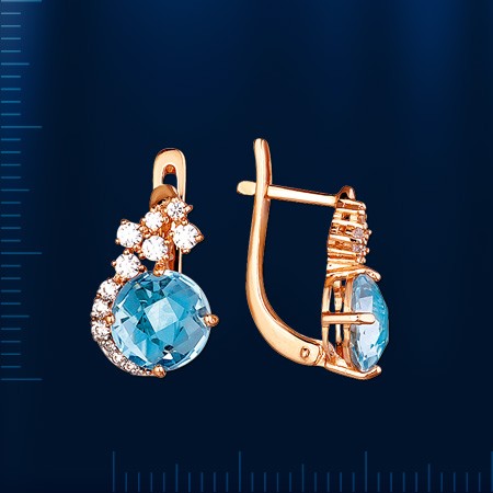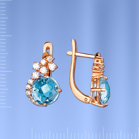 Серьги украшены крупными натуральными прозрачными топазами небесно-голубого цвета с давойной фасеточной огранкой, что позволяет еще раз подчеркнуть красоту натурального камня.