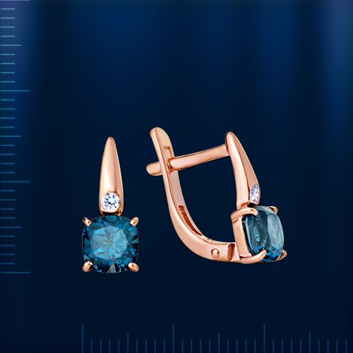 Вставки: 2 лондонского топаза (кушон 5.0 х 5.0 мм 0.288 ct), 2 сверкающих фианита ¢ 1.75 мм