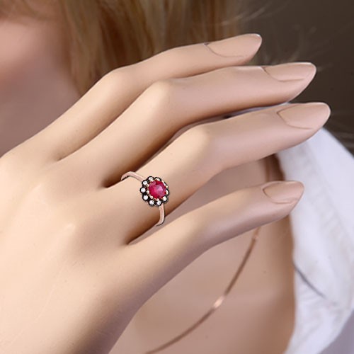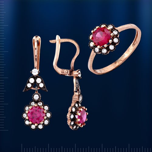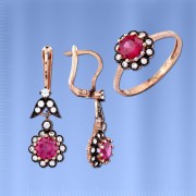 Вставка : Яркий фианит цвета рубина (¢ 6.0 мм), 10 сверкающих фианитов ¢ 1.5 мм