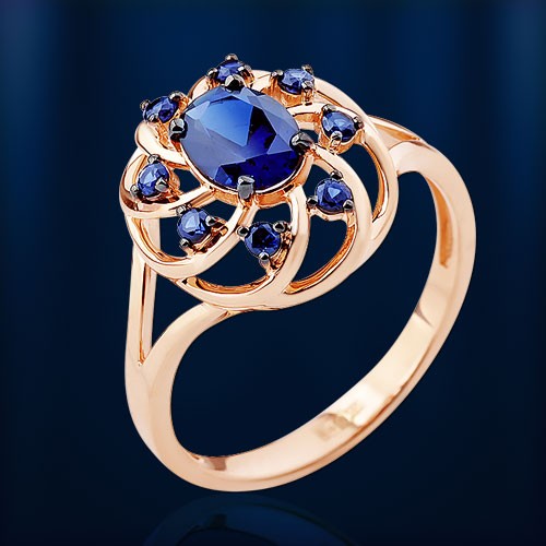 Свежесть сапфиров потрясёт своими переливами в кольце из красного
