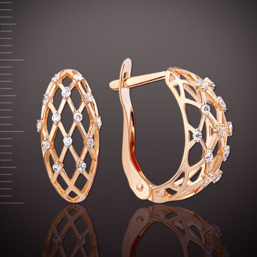 Милые золотые серьги выполнены из красного и белого