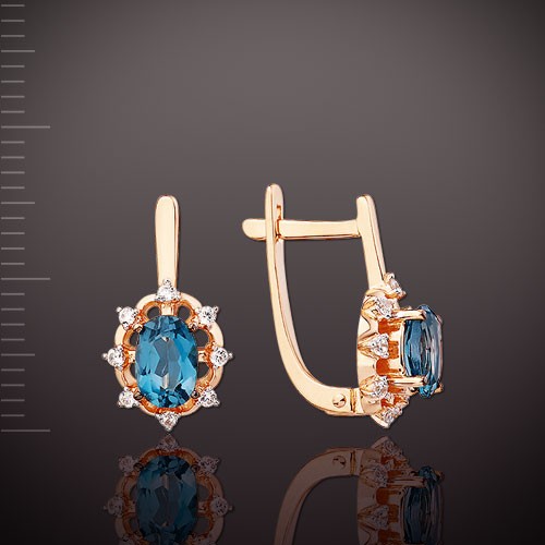 Вставки: 2 лондонских топаза (овал 6.0 х 4.0 мм 0.7 ct), 16