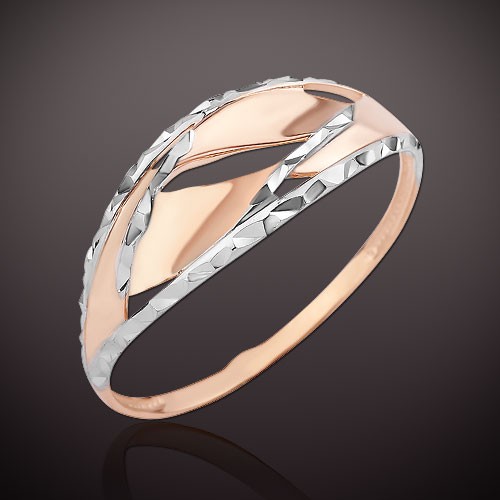 красного золота 585°, комбинированного с белым, с лазерной обработкой. Изделия такого типа крайне популярны среди молодёжи и людей среднего возраста. Такие украшения хороши, в частности, тем, что одинаково удачно сочетаются и с офисными, и с повседневными, и с выходными нарядами!