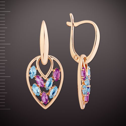 Шикарные золотые серьги с драгоценными камнями - истинное воплощение женственност! В этом украшении великолепно обыгран каждый цветовой контраст, каждый элемент!