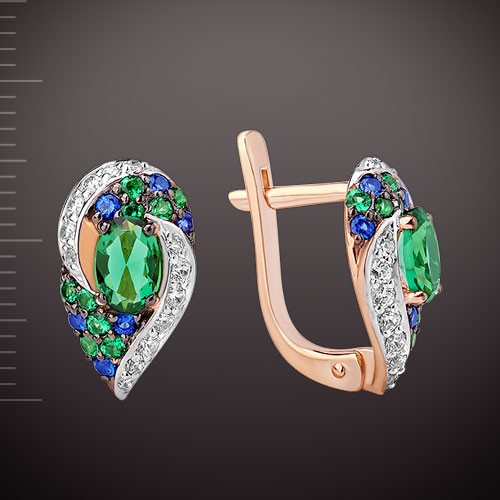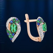 Вставки: 2 Изумруд нано 6.0 х 4.0 мм 0.154, 18 изумрудов нано ¢ 1.5 мм 0.396, 12 сапфиров нано ¢ 1.5 мм 0.384, 14 swarovski ¢ 1.5 мм 0.084, 8 swarovski ¢ 1.25 мм 0.024, 4 swarovski ¢ 1.0 мм 0.004