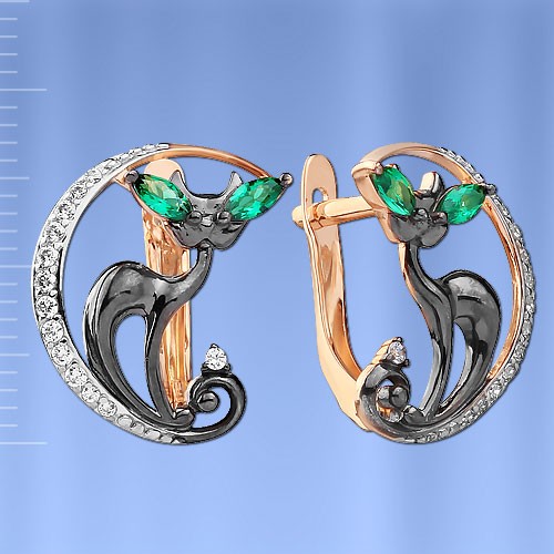 Изящные серьги " Черная кошечка" выполнены из красного и белого