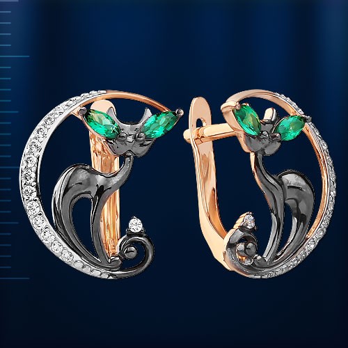 русского золота 585°. Особенность этим серьгам придаёт так же частичное чернение деталей, нанесённое на золото, с помощью новых технологий