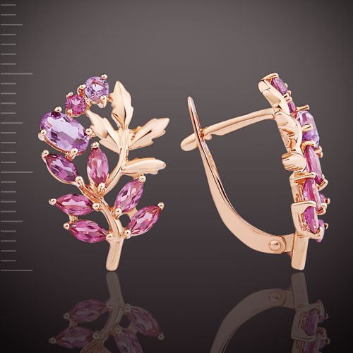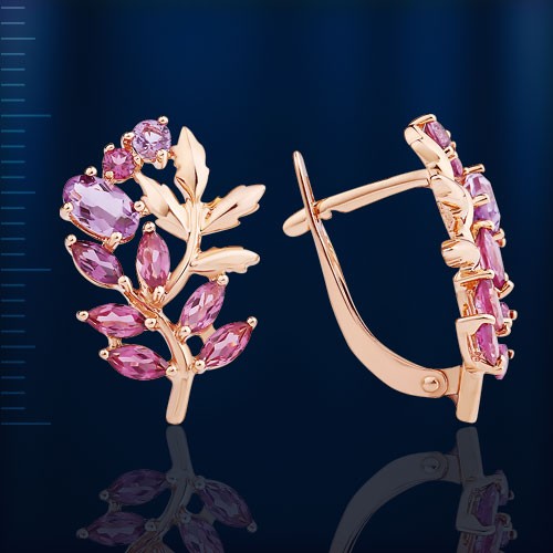 Ohrringe aus Rot/Weißgold 585° verziert mit 2 Amethyst ¢ 2.5 mm 0.1 ct, 2 Amethyst (5.0 x 3.0 mm 0.4 ct), 12 Rhodolith (4.0 x 2.0 mm 12.0 ct), 2 Rhodolith ¢ 2.0 mm 0.04 ct