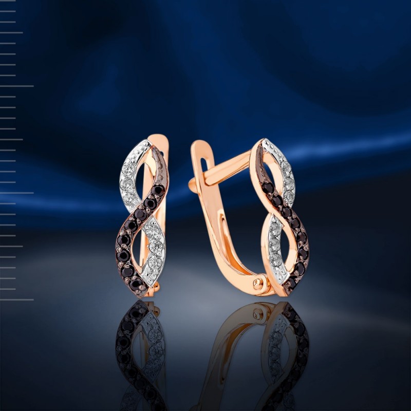 фианитами. Особенность этим серьгам придаёт так же частичное чернение деталей, нанесённое на золото, с помощью новых технологий