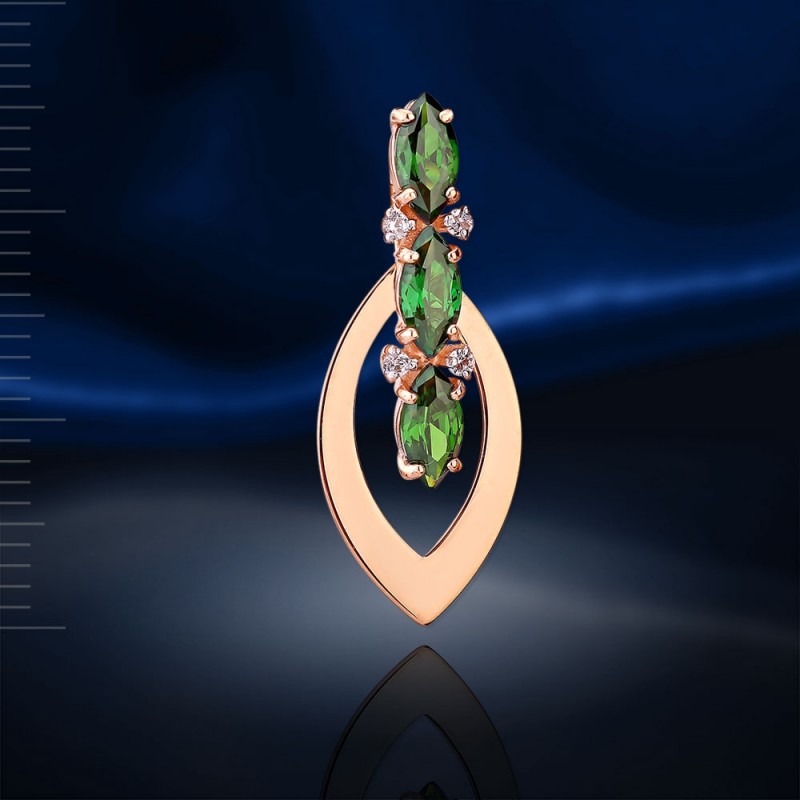 Вставка : 3 фианита цвета изумруда 6.0 х 3.0 мм, 4 фианита ¢ 1.25 мм