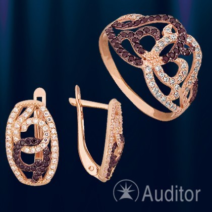 TOPAZ - Костромской Ювелирный Завод Гарнитур, из русского красного золота 585 пробы с цирконами. Набор состоит из кольца R23921 и серег OR06933. Серьги с английским замком- простым, надежным и долговечным. Покупая данные изделия в наборе, вы экономите 15€