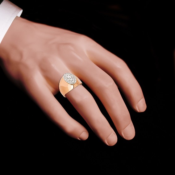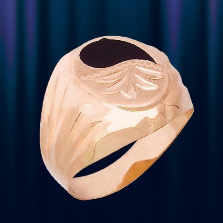 Herrenring aus rotem russischen Gold 585°. Insert: Schmelz. Der Ring hat eine hochglanzpolierte Oberfläche. Die Innenfläche des Rings mit einem Gold-Feingehalt gestempelt. Gewicht ca.6,2 g.
