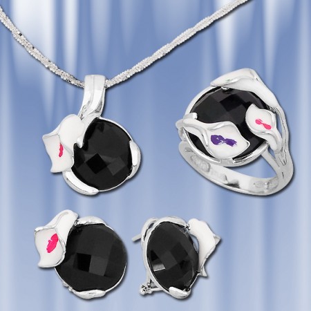 AUDITOR - Изготовлено для Auditor GmbH Гарнитур, из серебра 925 пробы с синтетическим ониксом, состоит из кольца, серёг и подвески. Украшения прекрасно подчеркнут нежность, очарование и естественность Вашей красоты. Покупая данный набор Вы получаете в подарок цепочку SKE1840 длиной 50 см.