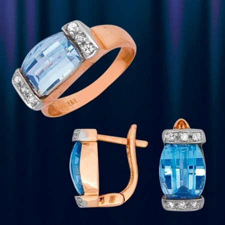 AUDITOR - Изготовлено для Auditor GmbH Гарнитур, из русского красного золота 585 пробы с топазом, состоит из кольца R324243 и серег OR223368. Серьги с английским замком- простым, надежным и долговечным. Покупая данные изделия в наборе, вы экономите 15€