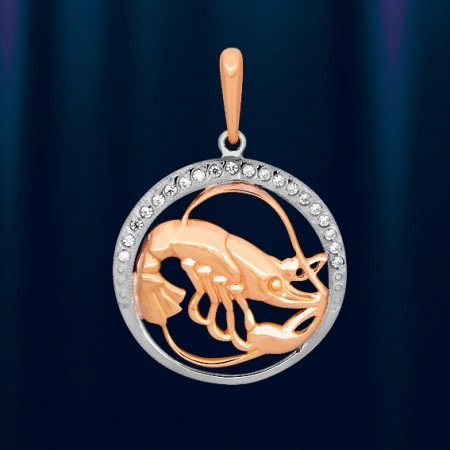 белого золота, украшенная цирконом. В основании подвески расположена фигурка рака из