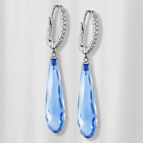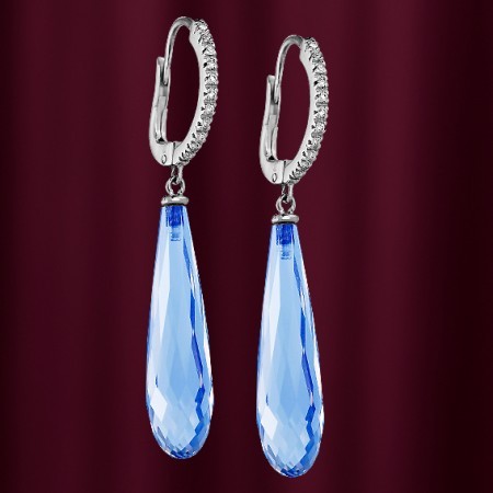 белого золота с бриллиантами и с крупными топазами. 22 бриллианта 0,10карата. Золото 750 пробы. Вес 4,10гр. Серьги с английским замком- простым, надежным и долговечным. Изготовление по предварительному заказу. Срок изготовления 1 месяц. Предоплата 500 .