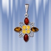 Фигурная подвеска из серебра 925 пробы с янтарём. Подвеска с янтарём, с этим удивительным «кусочком солнца», играющим всеми оттенками медового цвета, зачаровывая и пленяя своей красотой, будет радовать Вас всегда. Диаметр 30 мм.