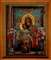 Очень красивая и сильная икона Божией Матери Милуящая , в деревяенной рамке под защитным стеклом.