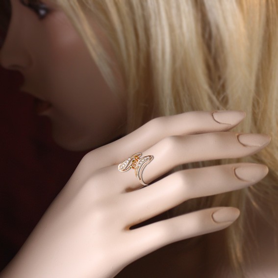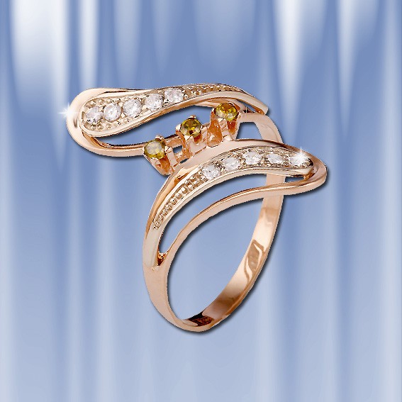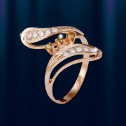 Ring aus Rot-Weißgold 585° verziert mit synthetischem Chrysolith und Zirkon. Der Ring wird Sie mit Schönheit und Eleganz begeistern.