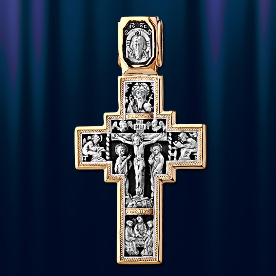 Нательный крест, с распятием Христа, выполнен из чернёного серебра 925 пробы с