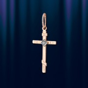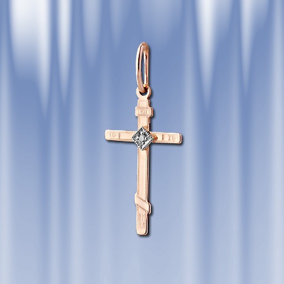Kreuzanhänger aus russischem Gold 585°mit Brillant 0,01 Karat. Länge mit Öse ca. 25 mm., Breite ca. 11 mm.