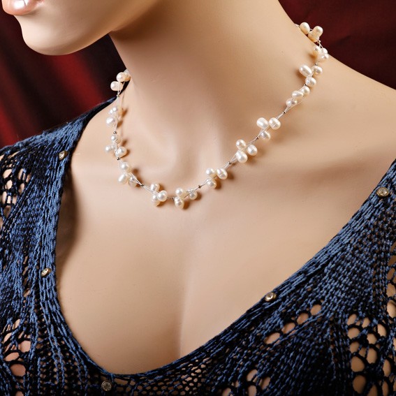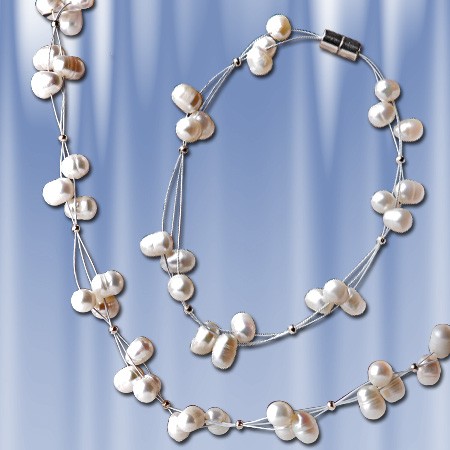 Garnitur aus Perlen besteht aus Kollier 46 cm, Armband 21 cm, Durchmesser 5,5 mm.