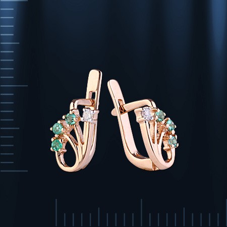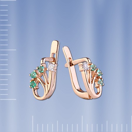 Вставки: 2 бриллианта 2Кр57 0.07 Кт. 3/5, 6 изумрудов 6Кр 0.12 карата 4/4 В.