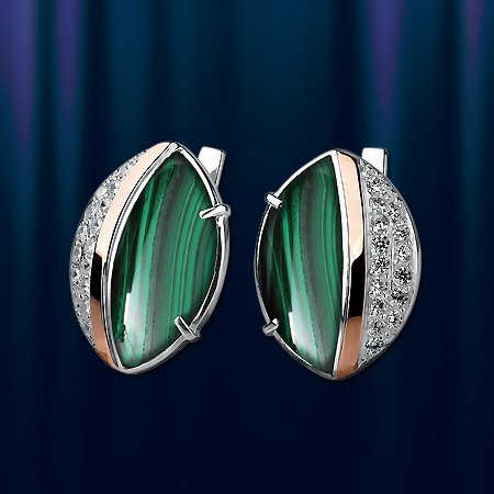 Ohrringe mit Malachit. Silber&Gold