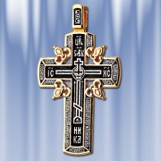 позолотой 999 пробы 5 микрон. Примерные размеры - высота крестика с ушком 68 мм, ширина 33 мм, толщина 1 мм. Размер ушка под цепочку - 10 х 4 мм.
