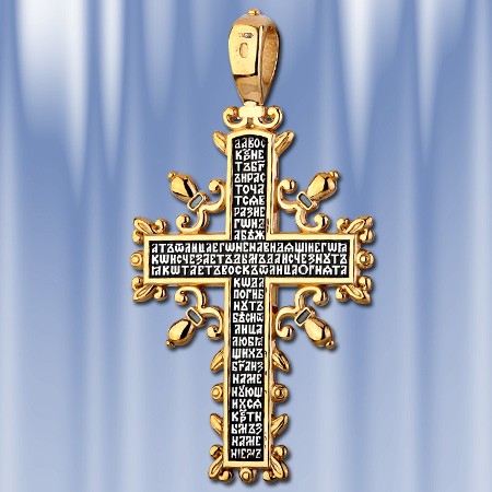 На лицевой стороне креста изображено Распятие Господа нашего Иисуса Христа. На обороте написаны начальные стихи оградительной молитвы Честному Кресту Господню. Эту молитву читают в опасности, а также носят при себе для защиты от злых сил: «Да воскреснет Бог, и расточатся врази Его, и да бежат от лица Его ненавидящии Его. Яко исчезает дым, да исчезнут; яко тает воск от лица огня, тако да погибнут беси от лица любящих Бога и знаменующихся крестным знамением, и в веселии глаголющих: радуйся, Пречестный и Животворящий Кресте Господень, прогоняяй бесы силою на тебе пропятаго Господа нашего Иисуса Христа, во ад сшедшаго и поправшаго силу диаволю, и даровавшаго нам тебе Крест Свой Честный на прогнание всякаго супостата. О, Пречестный и Животворящий Кресте Господень!Помогай ми со Святою Госпожею Девою Богородицею и со всеми святыми во веки. Аминь».
