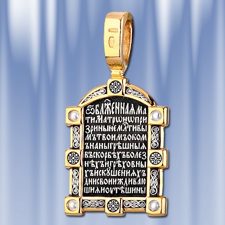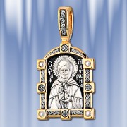 Блаженная Матрона была слепа от рождения, но имела от Господа особый дар духовного зрения и прозорливости. Она видела судьбы людей, исцеляла молитвой болезни. Святая и за гробом продолжает оказывать помощь всем, кто в ней нуждается, за что верующие с любовью называют ее Матронушкой. На обороте образка написана молитва: «О блаженная мати, Матроно, призриныне милостивым твоим оком на ны, грешныя, в скорбех, болезнях и греховных искушениях дни свои иждивающия, и утеши ны»