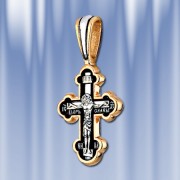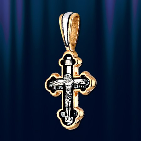 Das hochwertige und künstlerisch wertvolle massive Gußkreuz der Handarbeit aus des Silbers 925 Proben mit der Vergoldung 999 Proben das 5 Mikrometer erfüllt. Die musterhaften Umfänge, ca. - die Höhe des Kreuzchens mit der Öse 30 mm, die Breite 14 mm, die Dicke 2,0 mm. Der Umfang der Öse für die Kette - 10,0 х 4,0 mm.
