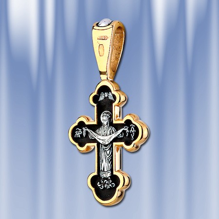 An der Vorderseite des Kreuzes ist die Kreuzigung Gottes Jesus Christus dargestellt. Auf der Rückseite – die Ikone Pokrowa Preswjatoj Bogorodizy. Der Feiertag der Decke der Gottesmutter ist eine Erinnerung des Wunders, die in der Wlachnernski Kirche 1 (am 14. Oktober 910 Jahre geschehen ist: die Gottesmutter Gläubiger über dem Altar des Tempels und über ihnen die Decke. Darin der Tag hat gottes-mater den Menschen geöffnet, dass Sie Chodataizej für sie vor dem Gott ist.