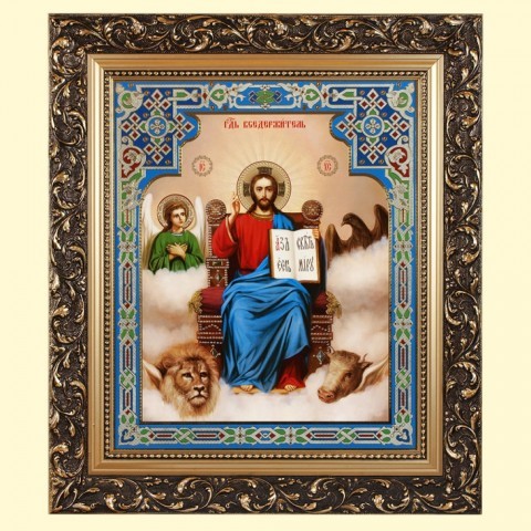 Вседержитель или Пантократор (греч. - всевластный) - центральный образ в иконографии Христа, представляющий Его как Небесного Царя и Судию. Спаситель может изображаться в рост, сидя на троне, по пояс, или огрудно. В левой руке свиток или Евангелие, правая обычно в благославляющем жесте. Образ Христа Вседержителя используется в одиночных иконах, в составе деисусных композиций, в иконостасах, стенных росписях и т. д. Так, этот образ традиционно занимает пространство центрального купола православного храма.
